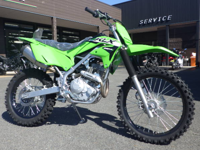 より幅広い方が本格的なオフロードライディングを楽しめるよう設計されたKLX230R S。KLX230Rよりも25mm低く設定されたシート高。